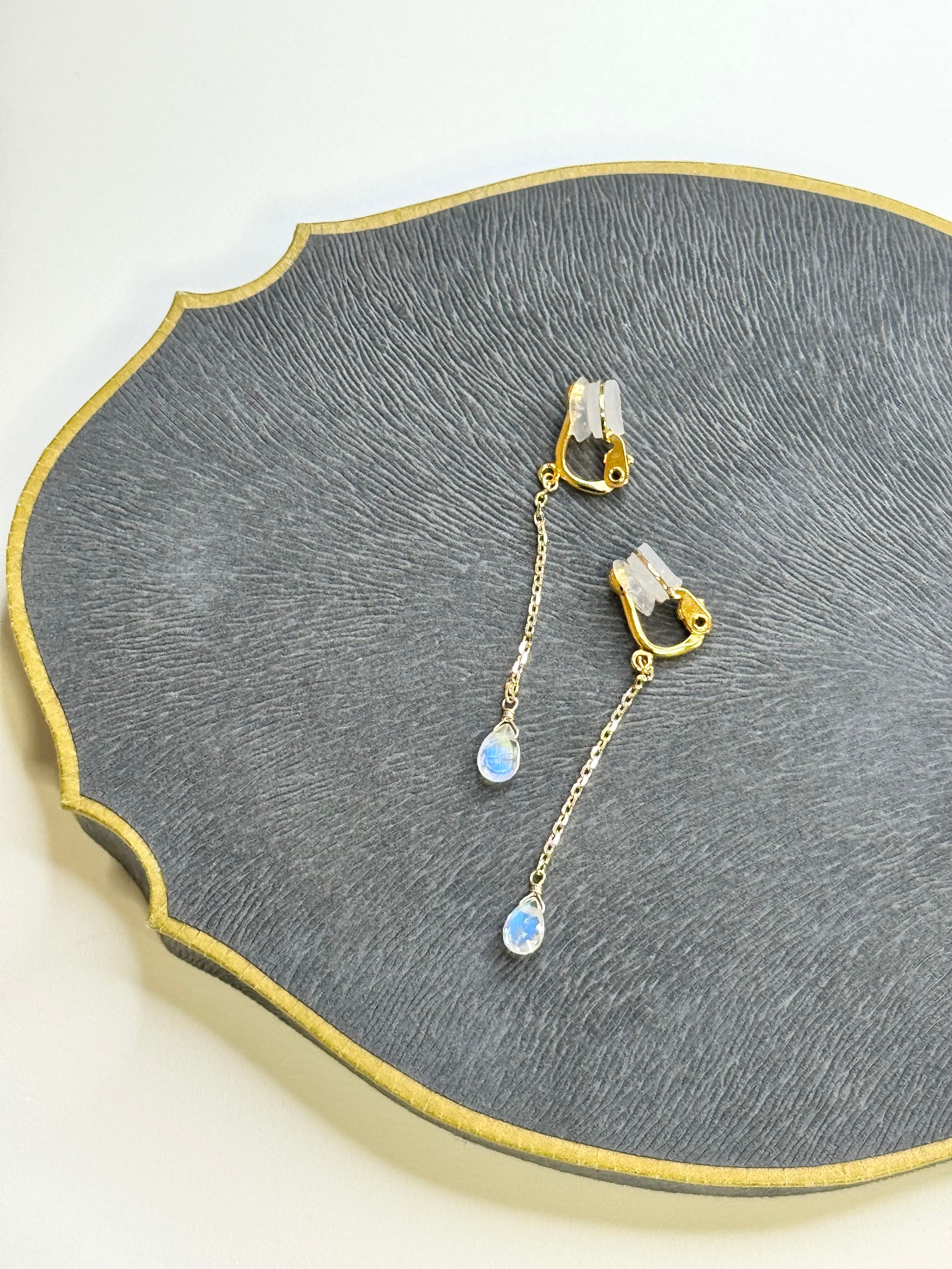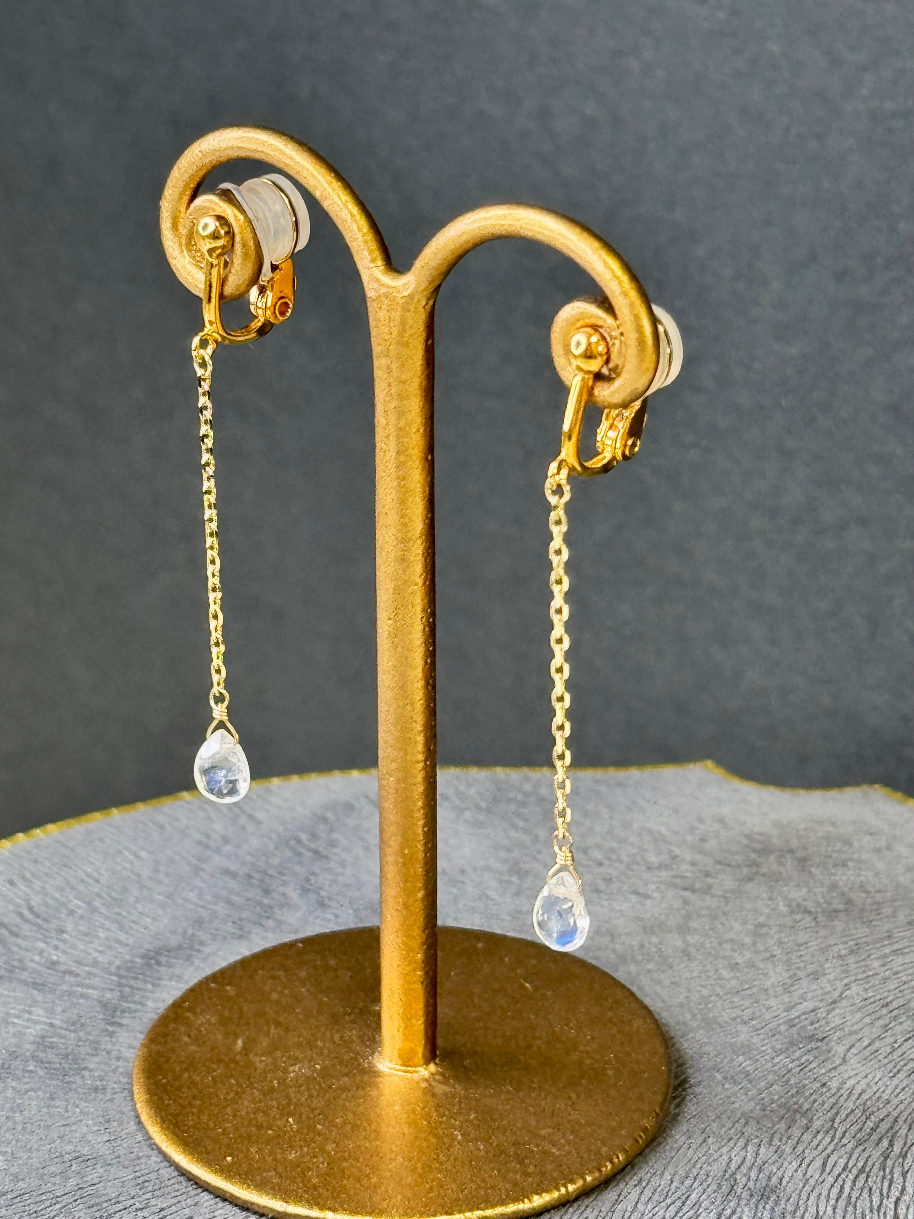 レインボームーンストーンチェーンイヤリング